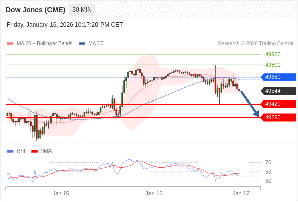 交易策略: 在 49680 之下,看跌,目标价位为 49420 ,然后为 49290 。