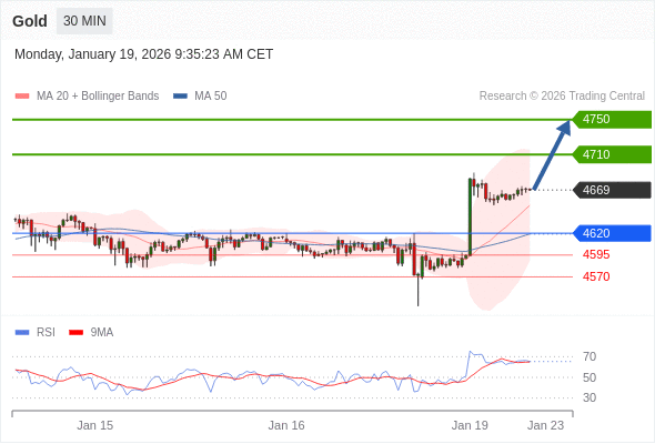 交易策略: 在 4620 之上,看涨,目标价位为 4710 ,然后为 4750 。