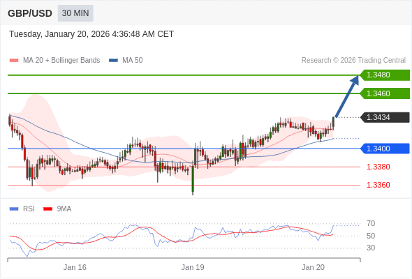 在 1.3400 之上,看涨,目标价位为 1.3460 ,然后为 1.3480 。