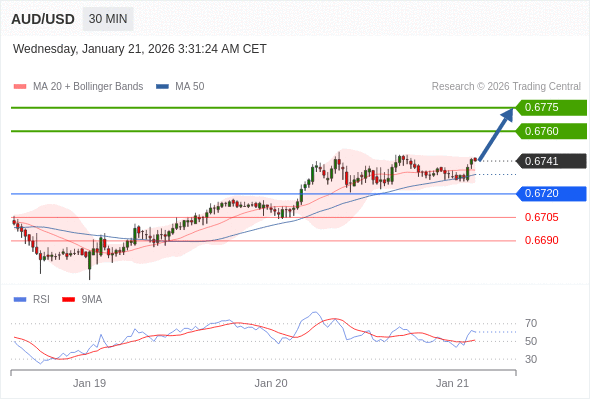在 0.6720 之上,看涨,目标价位为 0.6760 ,然后为 0.6775 。