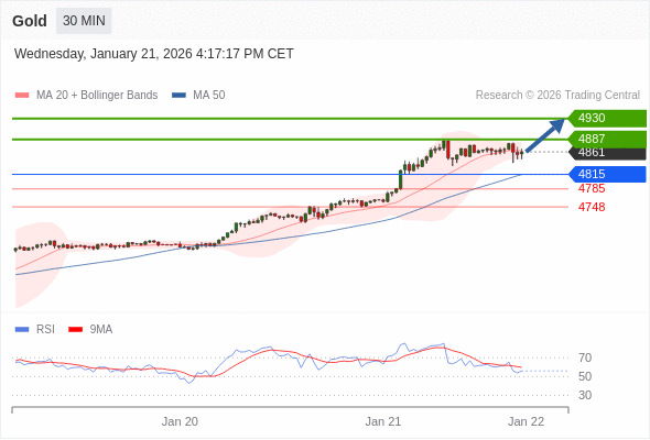 在 4815 之上,看涨,目标价位为 4887 ,然后为 4930 。