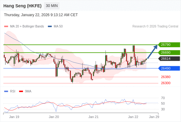 在 26490 之上,看涨,目标价位为 26690 ,然后为 26790 。