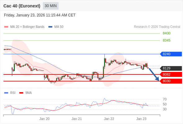 法国CAC指数期货 (Euronext) (G6) 当日内: 存在压力。