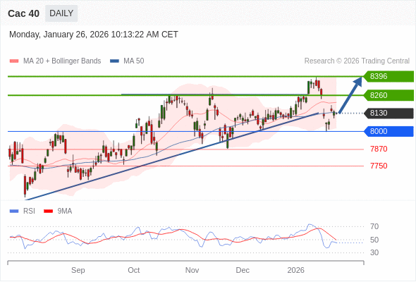 Cac 40 短线: 没有明显变化趋势。