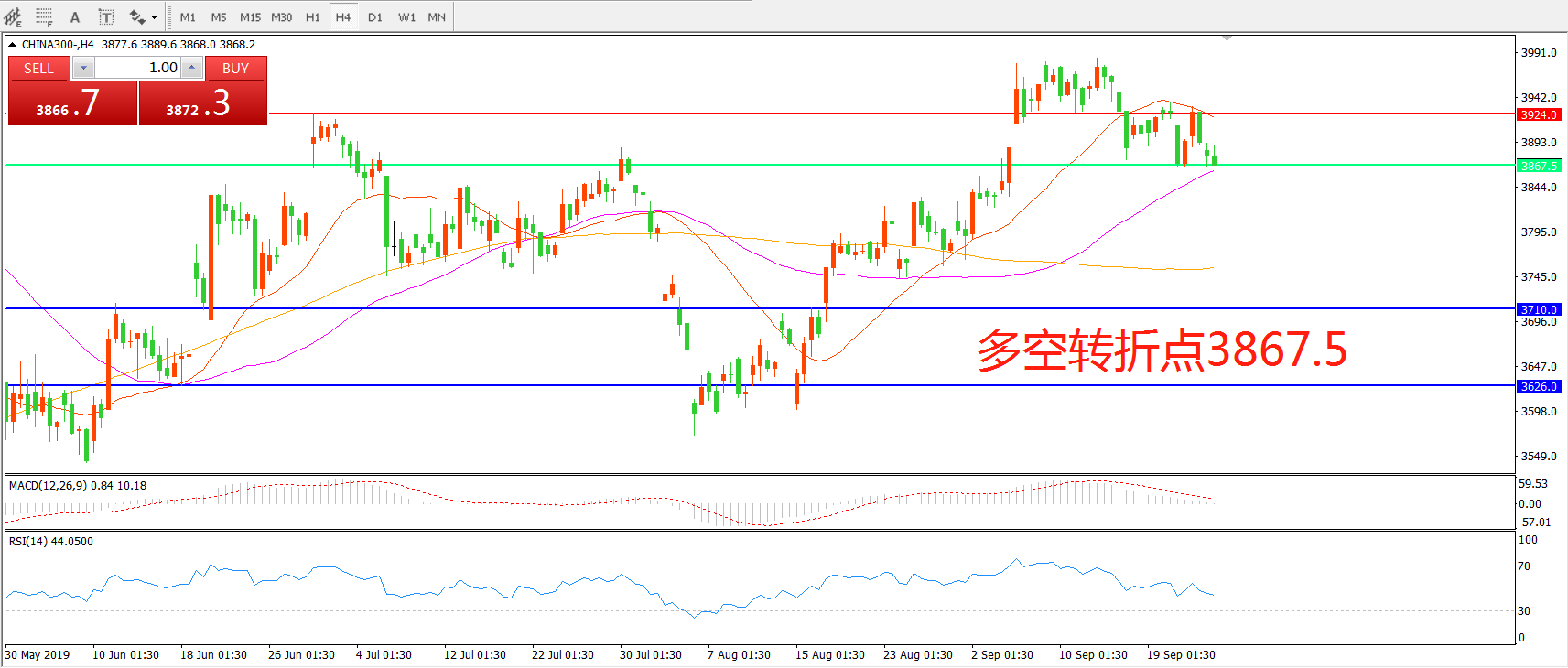 多空转折点:3867.50