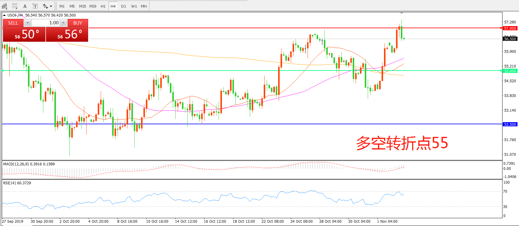 交易策略:在55.00之上看涨,目标57.00 58.50