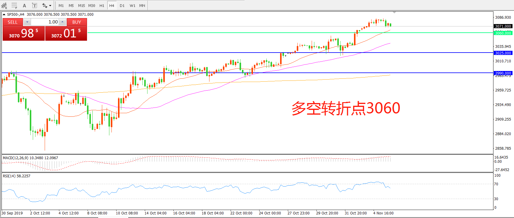 多空转折点:3060.00