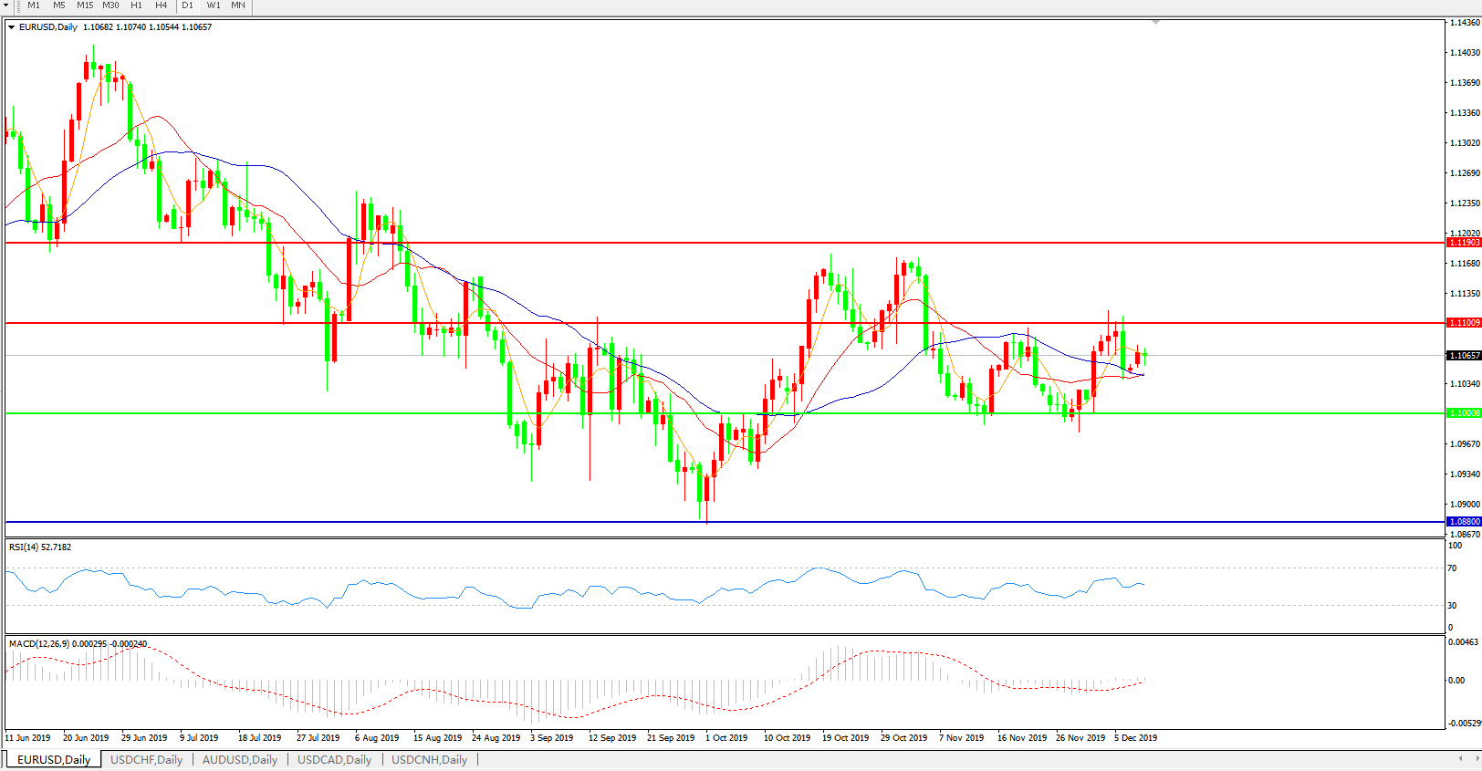 交易策略:1.1000上方看涨,目标1.1100、1.1190