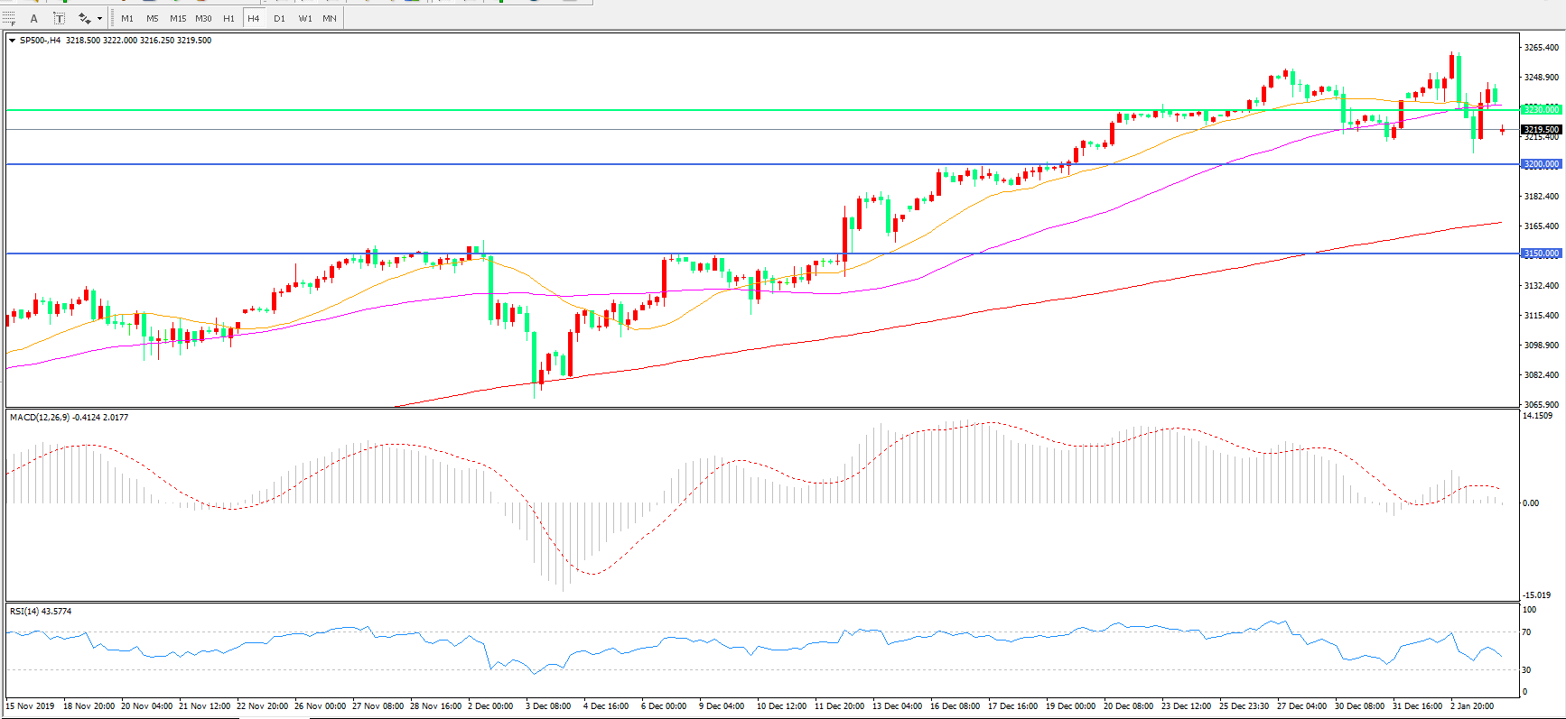 交易策略:在3230.00之下看跌,目标3200.00        3160.00
