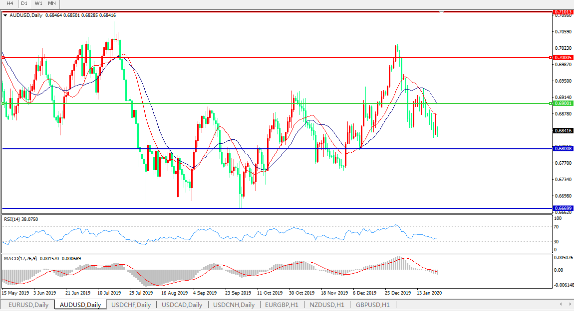 交易策略:0.6900下方看跌,目标0.6800、0.6670