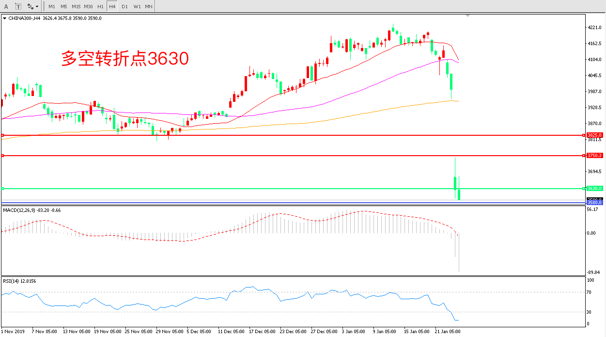 沪深300  CHINA 300   4小时图