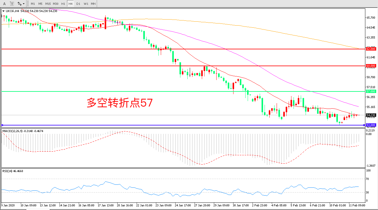 交易策略:在57.00之下看跌,目标53.00    50.00