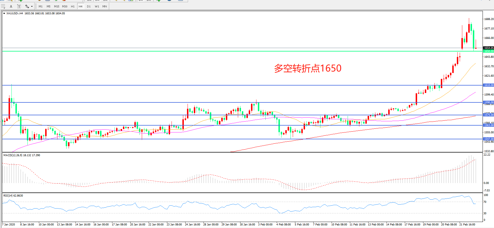 多空转折点:1650.00