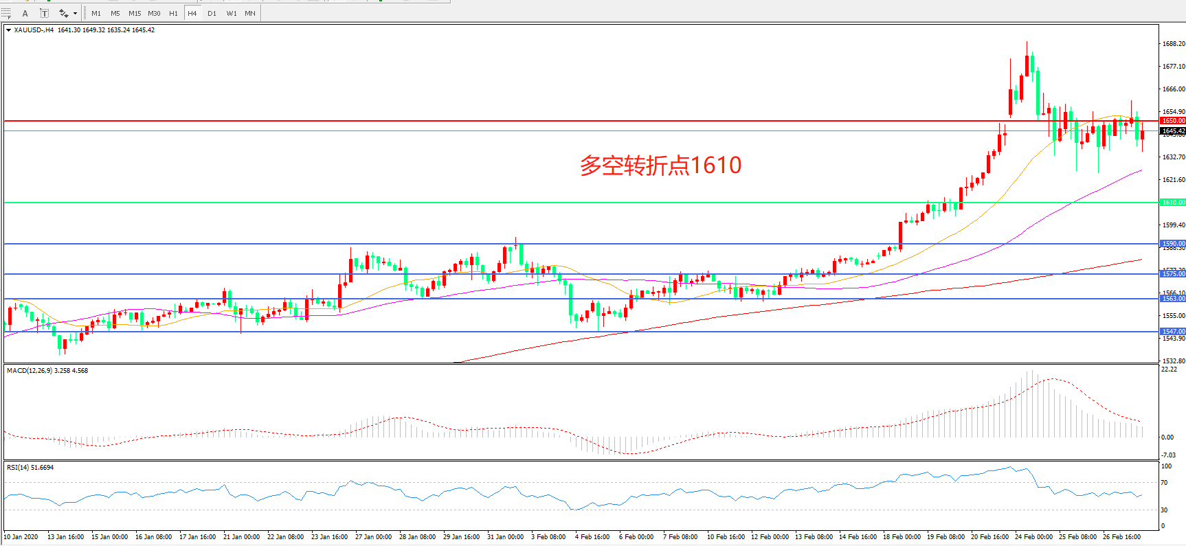 交易策略:在1610.00之上看涨,目标1650.00   1700.00