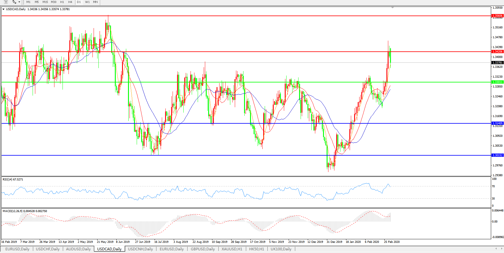 美元兑加元USDCAD 日线图: