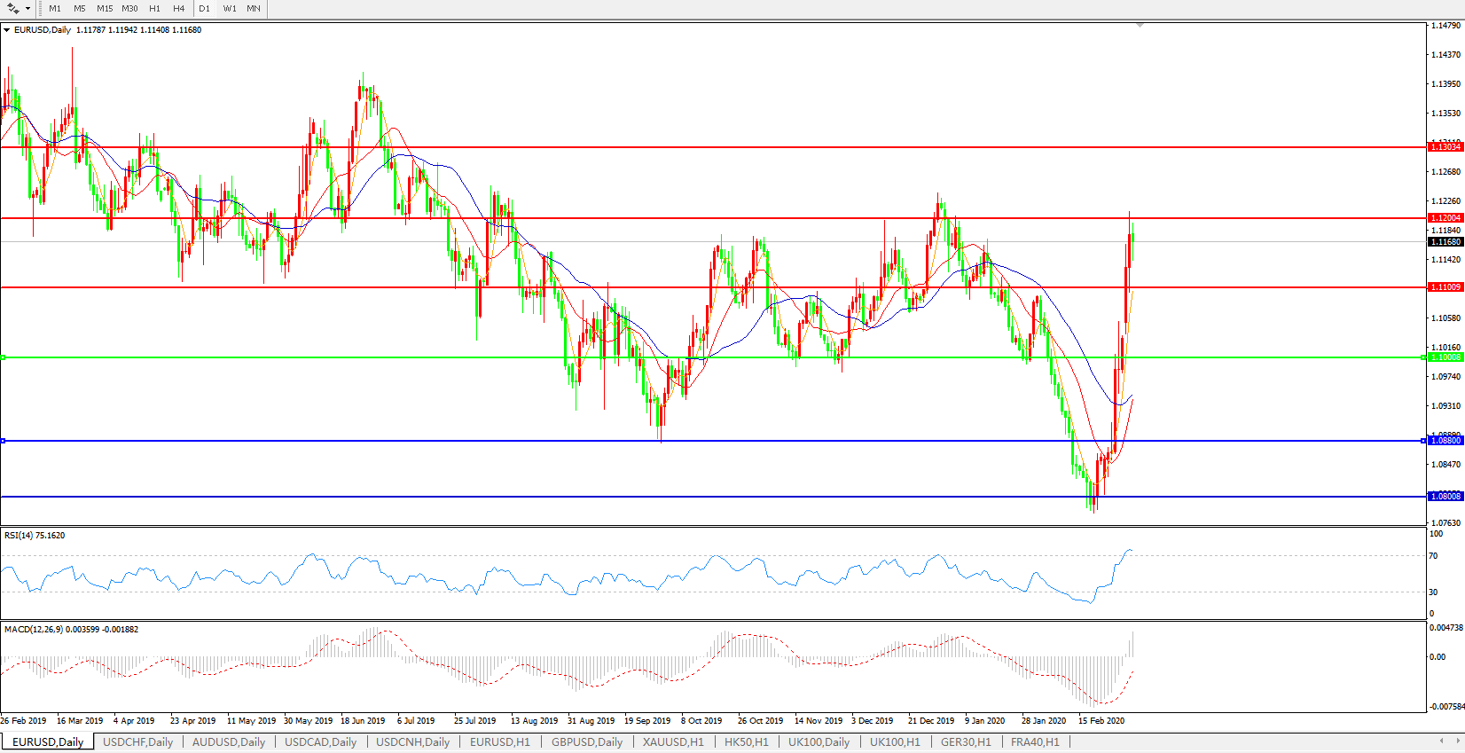 欧元兑美元EURUSD 日线图: