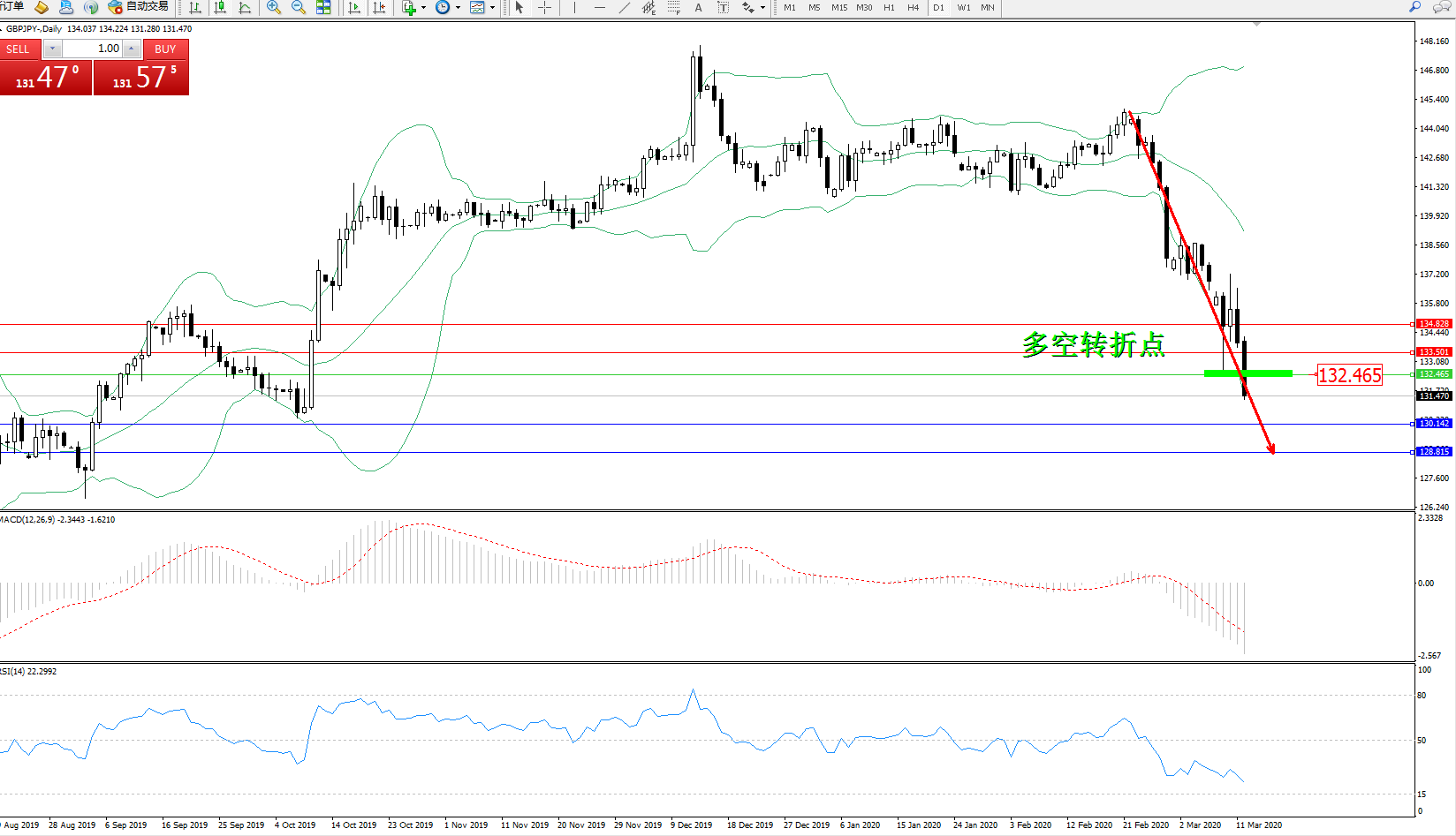 交易策略:132.465下方看跌,目标130.142128.815