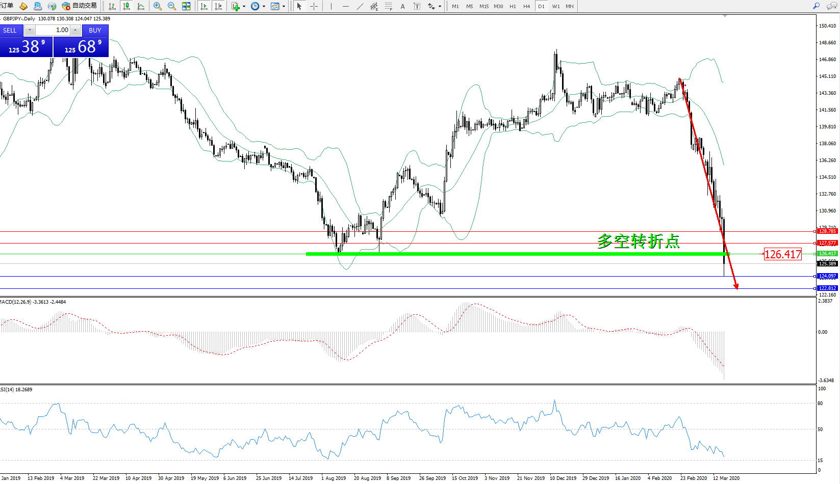 交易策略:126.417下方看跌,目标124.097、122.812