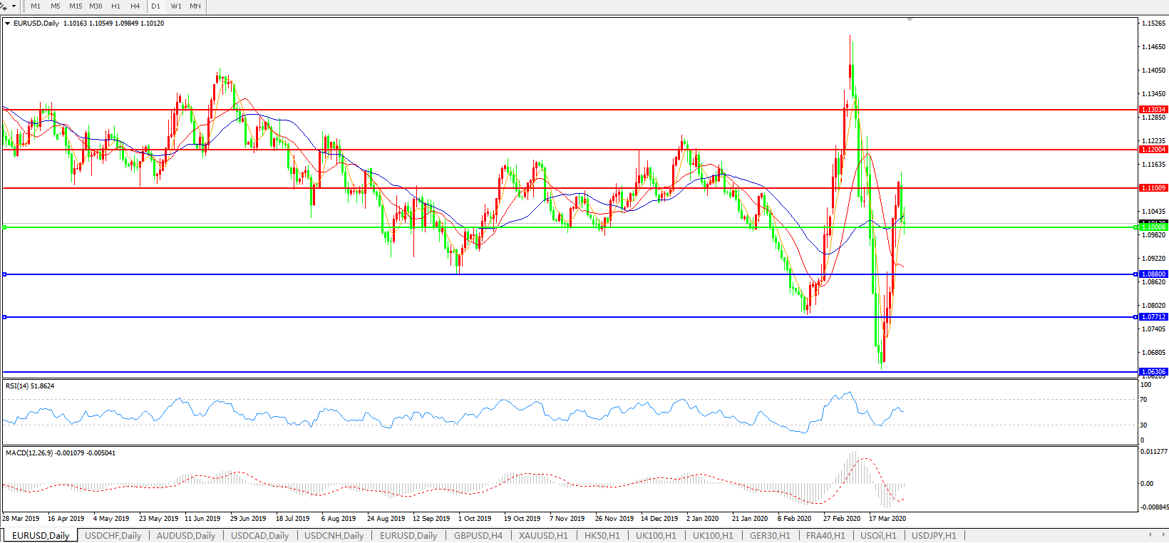 交易策略:1.1000上方看涨,目标1.1100、1.1200
