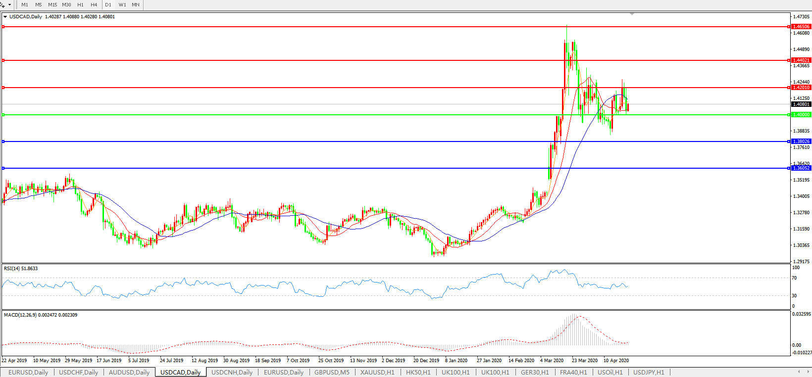 美元兑加元USDCAD 日线图: