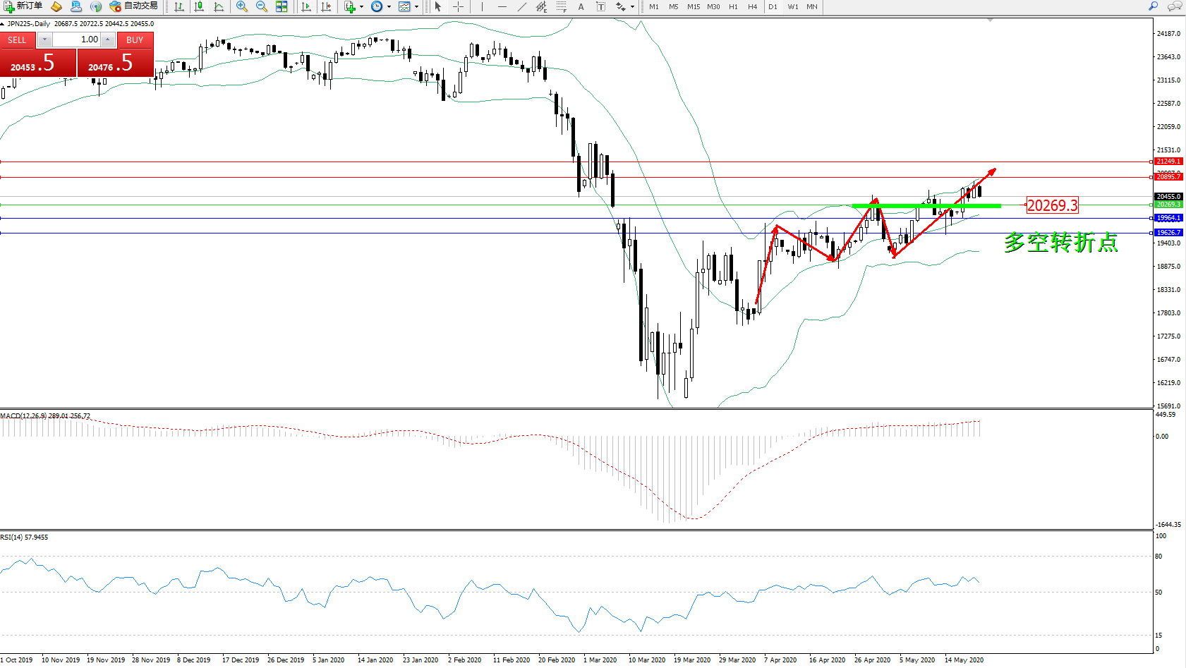 日经225指数521日(周四)收盘下跌24.15点,跌幅0.12%,报20571.00点。日本5月工厂活动加速下滑,因产出和订单减少,凸显出新冠疫情给制造业带来的压力越来越大。5月经季节调整的制造业采购经理人指数(PMI)初值跌到38.4,创20093月以来最低。4月终值为41.9。整体指数下滑受产出、新订单和积压工作大幅下滑拖累,这三项分类指数均创十多年来的最大降幅;尽管服务业活动下降速度略微放缓,但商品需求大减最终还是拖累了制造业,这份暗淡的数据中也有亮点,即就业形势指标持平。制造业指数已连续第13个月低于50的荣枯分水岭。新冠疫情对全球供应链产生巨大影响,导致日本等仰赖贸易的国家陷入困境。本周出炉的国内生产总值(GDP)数据显示,日本经济四年半来首次陷入衰退;随着新冠病毒危机给企业和消费者带来沉重打击,日本料将陷入战后最严重的衰退。