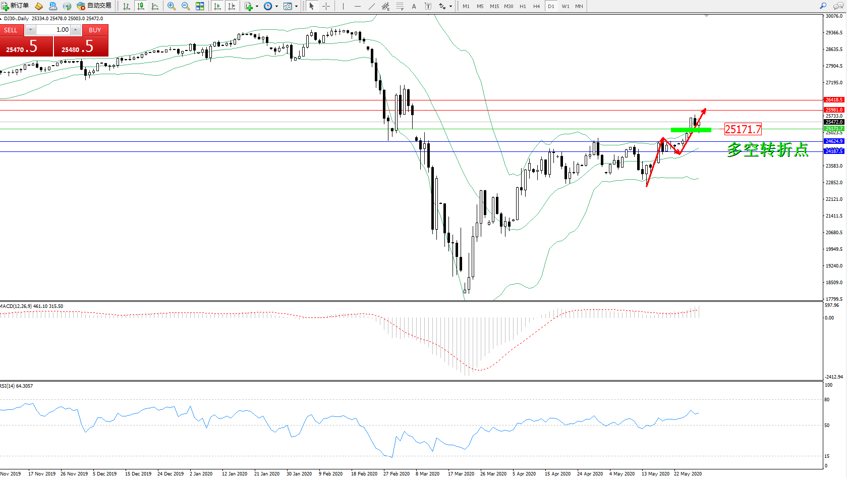 交易策略:25171上方看涨,目标25981、26418