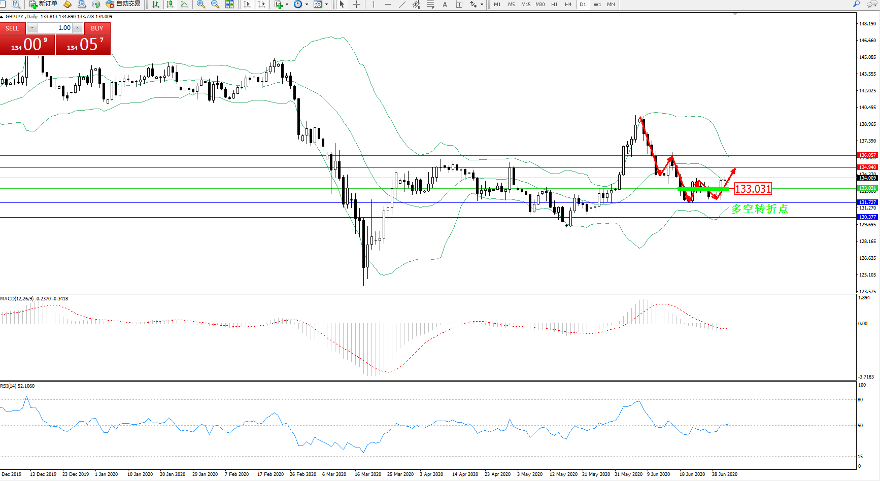 英镑兑日圆弱势震荡134.103附近,尽管经济前景黯淡,但英国资本市场仍有复苏希望,今年第一季度,英国国内生产总值出现了自1979年以来最严重的收缩,贸易逆差扩大到211亿英镑(264亿美元);目前英国股市较摩根士丹利资本国际世界指数(MSCI World index)有19%的折让,而2002年以来的平均折让幅度为7%,这意味着未来12个月有很大的上涨潜力;英国将受益于全球经济复苏的有利前景,预计美元将下跌,因避险资金流向发生逆转,且11月美国总统大选前政治不确定性上升。