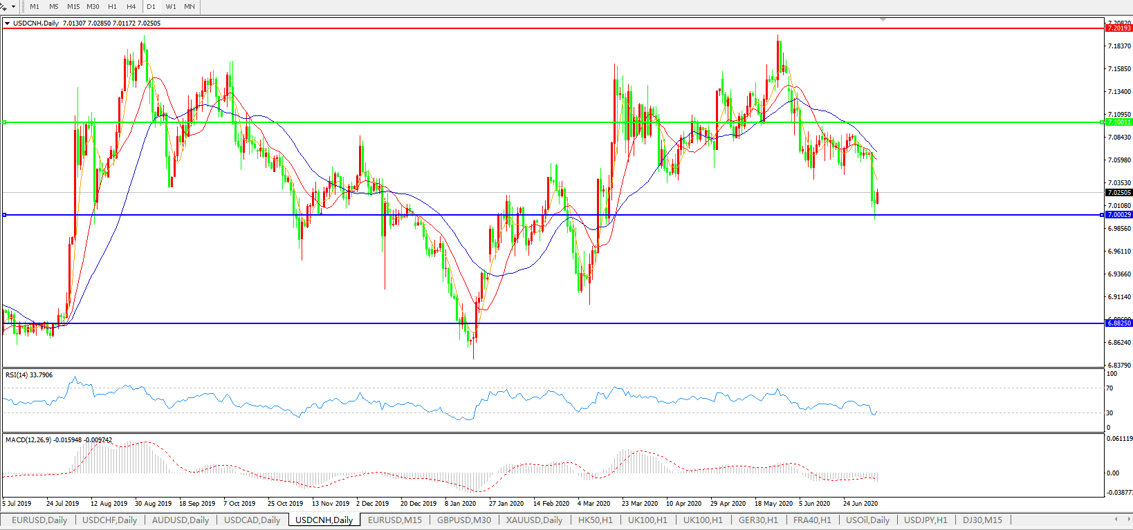 备选策略: 在7.1000之上,看涨,目标价位为7.2000,然后为7.3000。