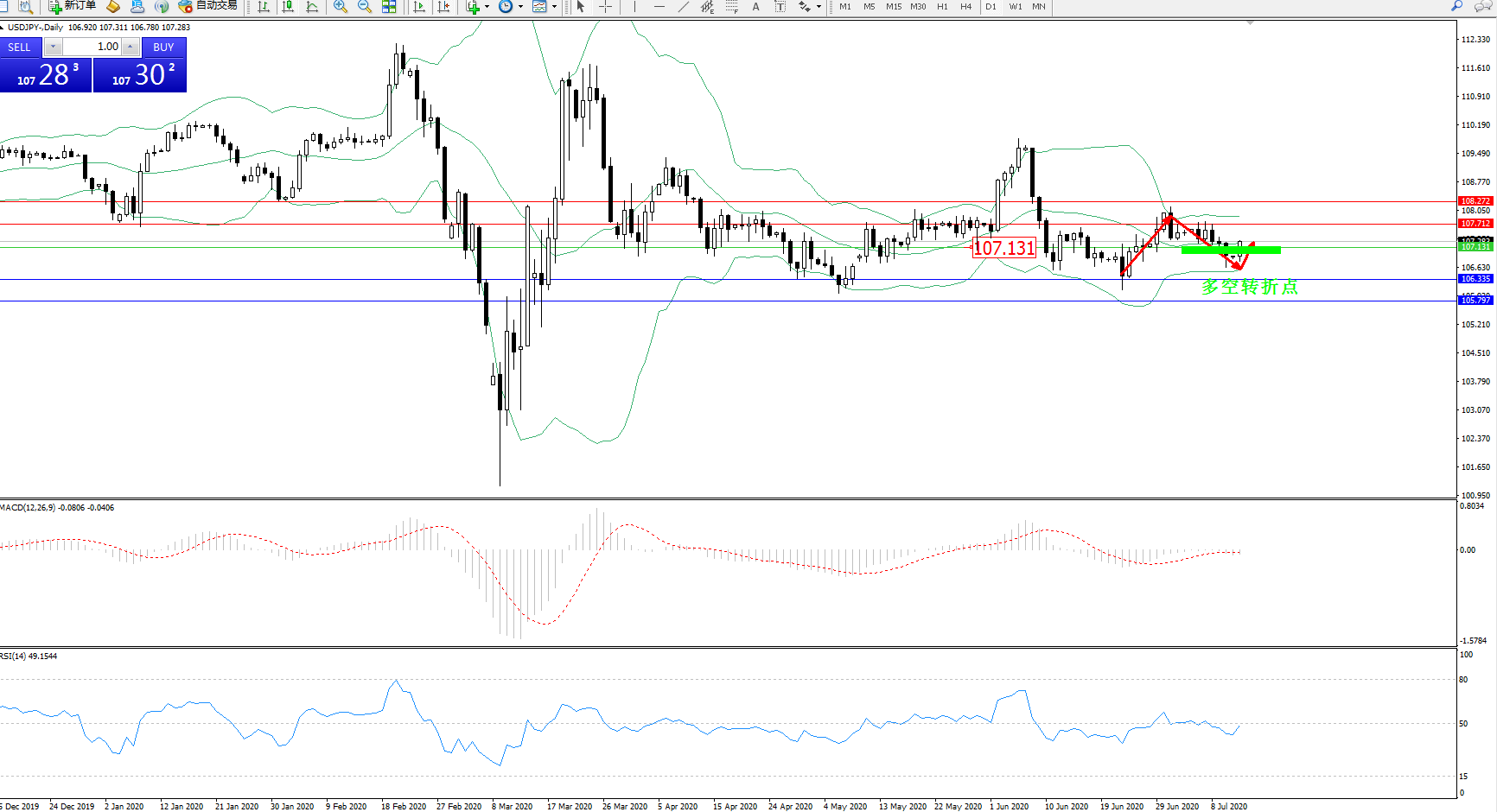 多空转折点:107.131
