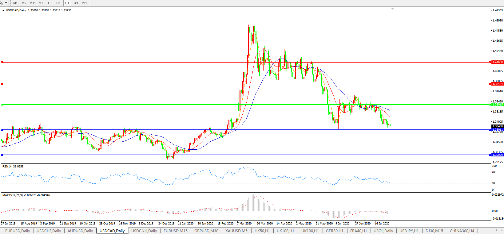 美元兑加元USDCAD 日线图: