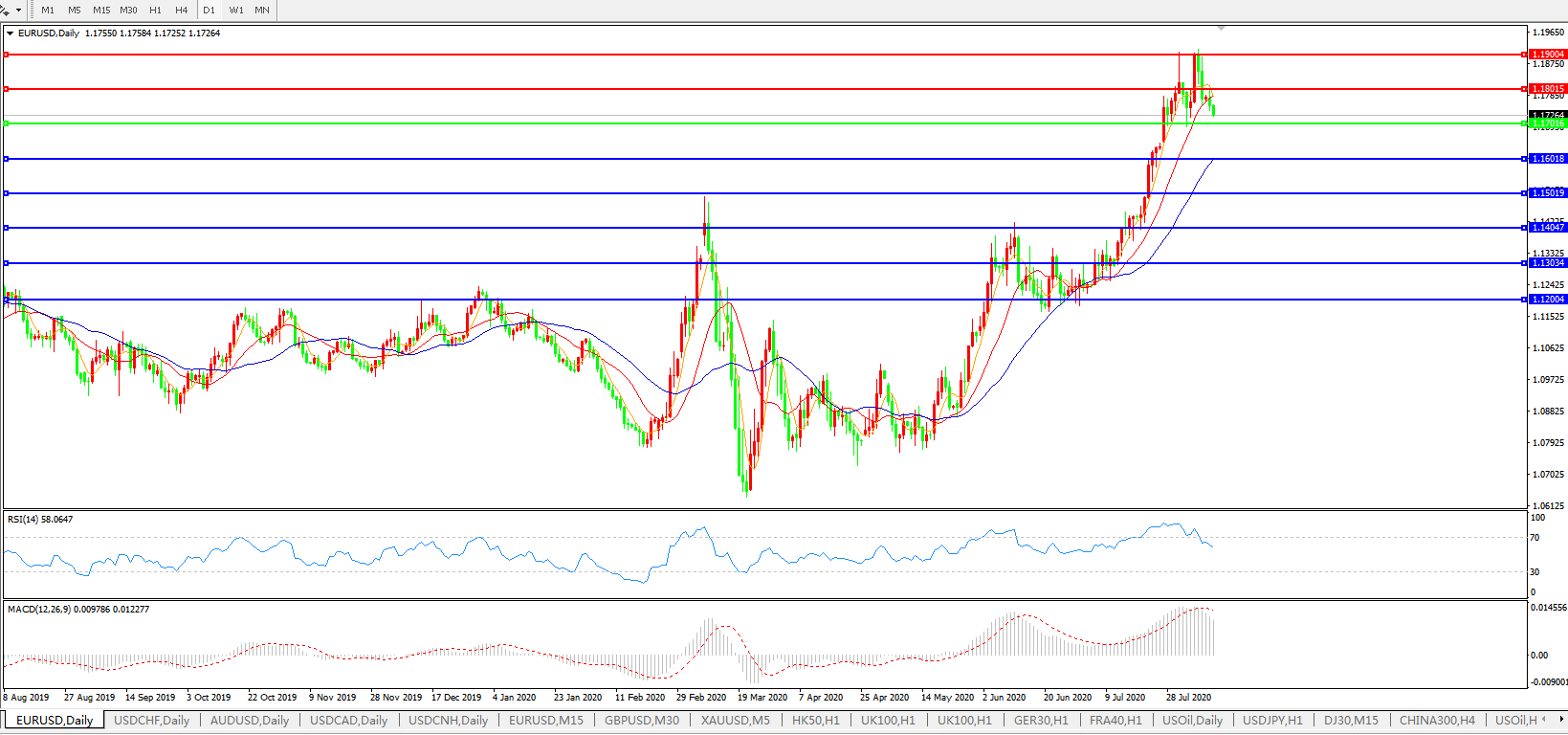 欧元兑美元EURUSD   日线图: