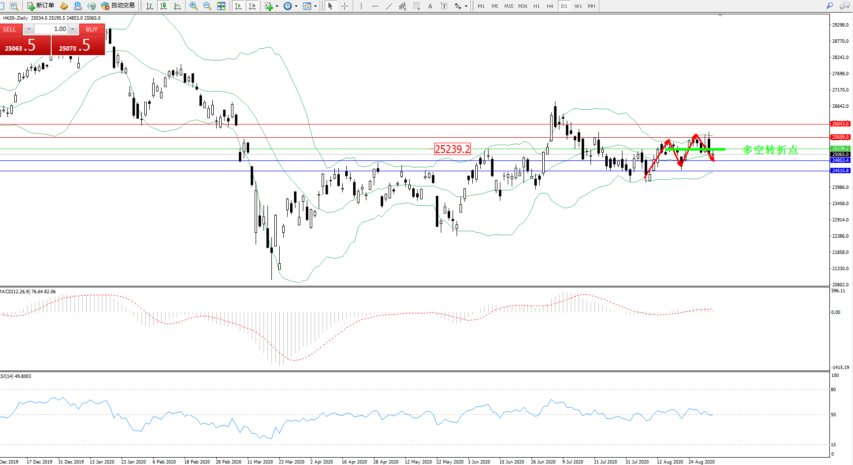 香港恒生指数9月1日(周二)收盘上涨7.80点,涨幅0.03%,报25184.85点;港股三大指数收盘涨跌不一,汽车股强势领涨,比亚迪股份飙涨近14%;黄金股及餐饮股继续造好,石油股走势分化;大型科技股造好,小米大涨9%再创新高,美团升3.5%,腾讯涨1.6%。今日南下资金净流入42.15亿港元,大市成交额为1390亿港元。近日,腾讯(00700)新增多项专利,其中包括“自动驾驶方法、装置、设备、系统、车辆和计算机可读存储介质”等。中国香港7月零售销售量同比降23.9%,预期降26.2%,前值降25.4%;零售销售额同比降23.1%,预期降27.4%,前值降24.8%。