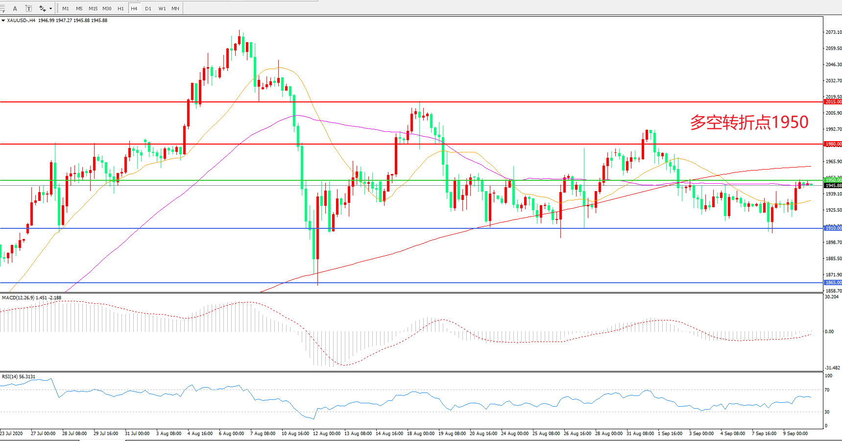 交易策略:  在1950.00之下看跌,目标1910.00   1865.00