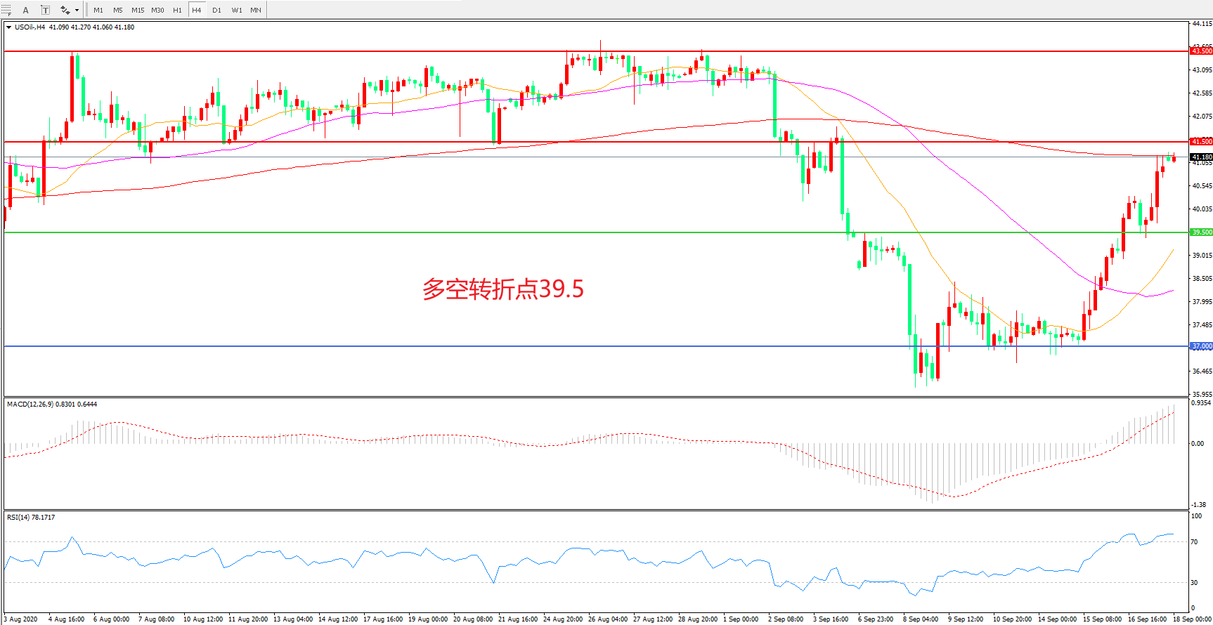 周四(9月17日),在欧佩克部长级监督委员会会议期间,沙特阿拉伯对其在该地区最亲密的盟友阿拉伯联合酋长国进行了几乎不加掩饰的斥责,表明了其阻止欧佩克及其成员国在生产配额上作弊的决心,伊拉克表示会很好地遵守,阿联酋也表示会对减产协议良好的执行。其中会议上还提到,如果十月份基本面情况恶化,那么OPEC+将有可能会进行进一步的减产动作。美国WTI原油再度大幅回升,收报41.08美元/桶。
