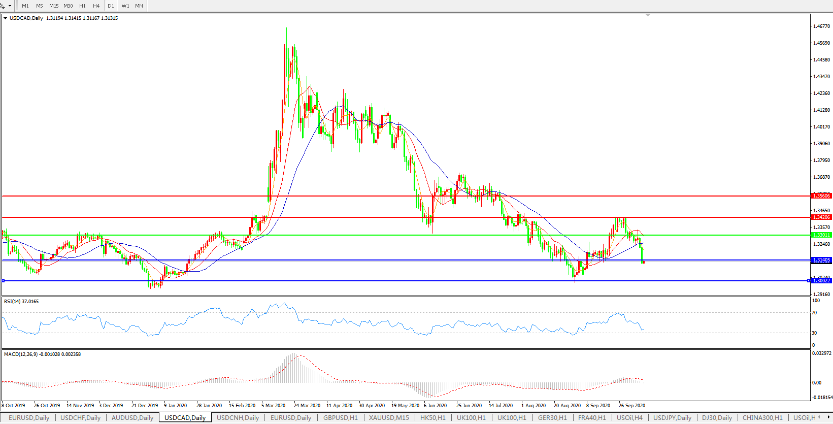 美元兑加元USDCAD 日线图: