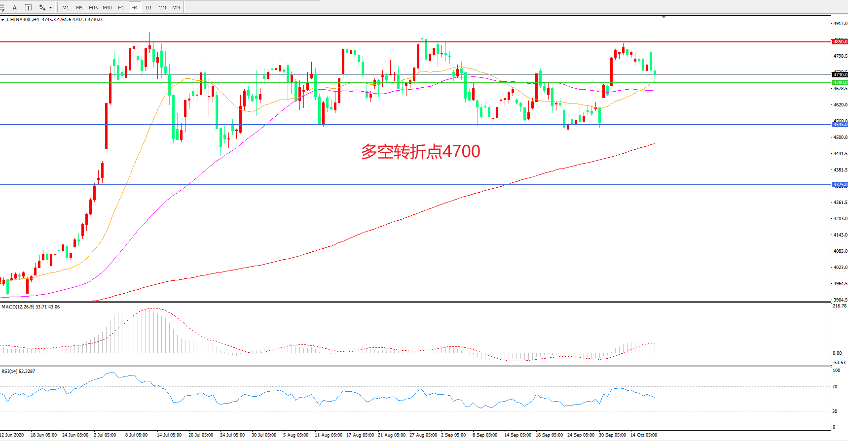 多空转折点:4700.00