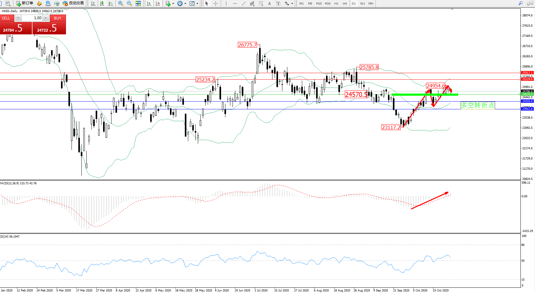 恒指HK50 ——日K线图显示: