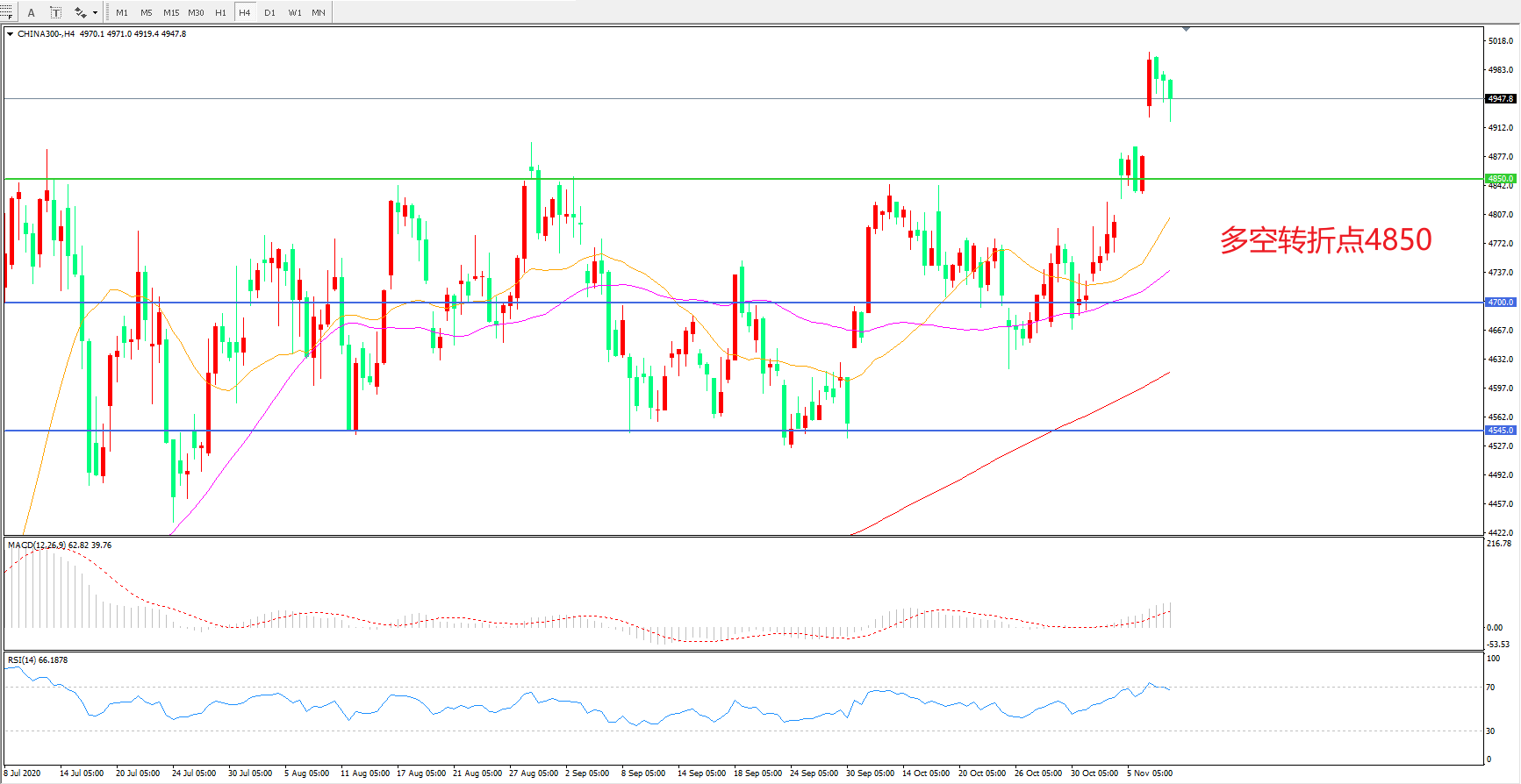 周二(11月10日),疫苗消息令海外资产提振,欧美市场纷纷大涨,全球一片欣然。但相比之下,A股的表现却令人失望,沪深300高开低走,收报4947.8。两市合计成交9812亿元,北向资金净流出41.1亿元。沪深300指数距离今年新高仅一步之遥,继续上行需要增量资金的配合。