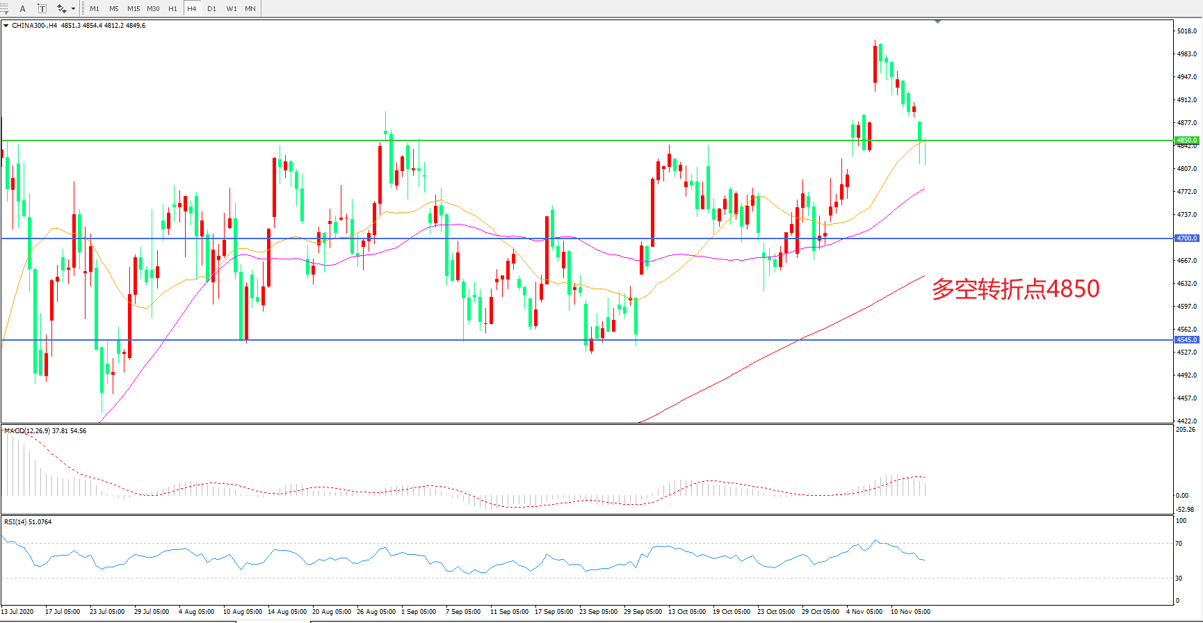 多空转折点:4850.00