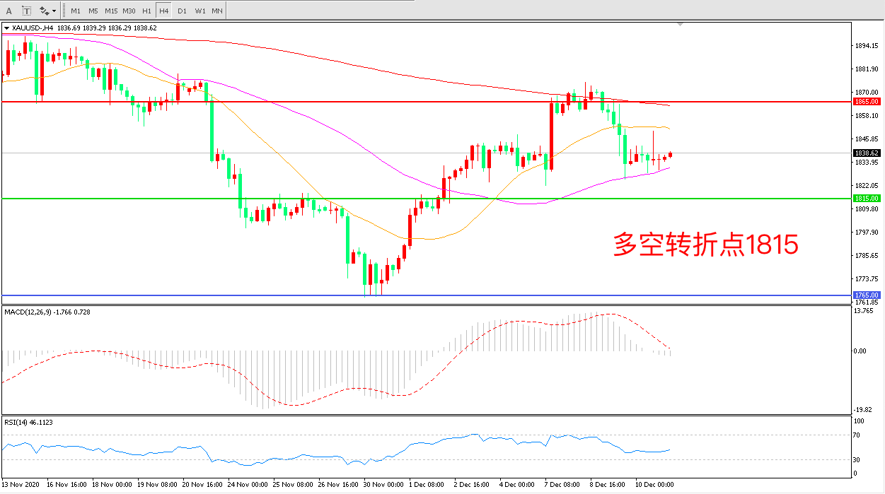 12月10日),现货黄金波动较大,日内一度涨破1850美元整数位,日内较低反弹超21美元,但美盘开盘后一个半小时回吐全部涨幅转跌,盘中下逼1830美元,最终收报1837.17美元/盎司。从长期来看,避险需求回落可能会给黄金需求带来一些打压,但疫情结束后,全球再通胀预期升温有望在中长期继续支持金价。