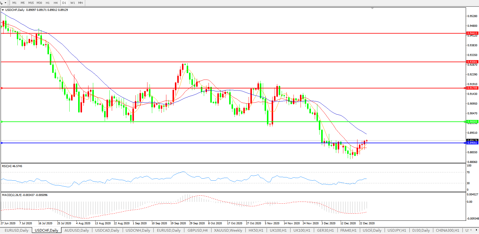 美元兑瑞郎USDCHF 日线图: