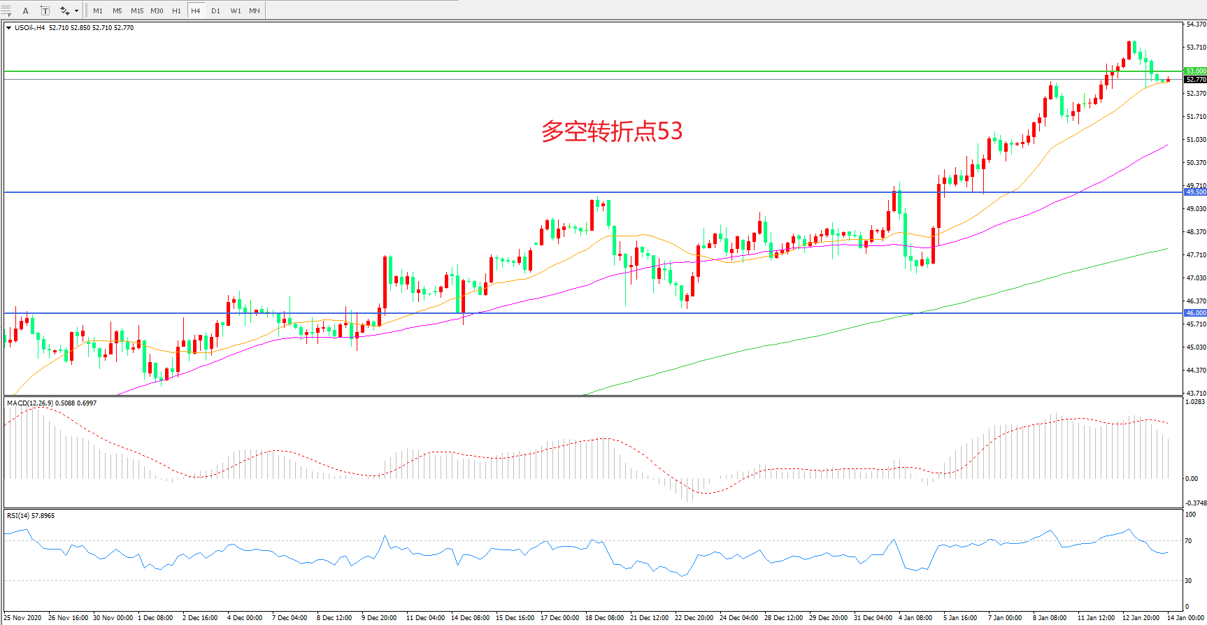 交易策略:在53.00之上看涨,目标56.00 59.50