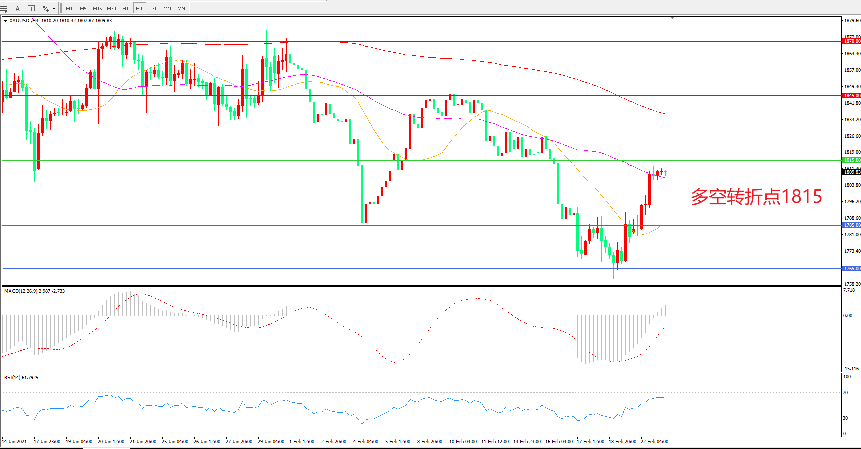 多空转折点:1815.00