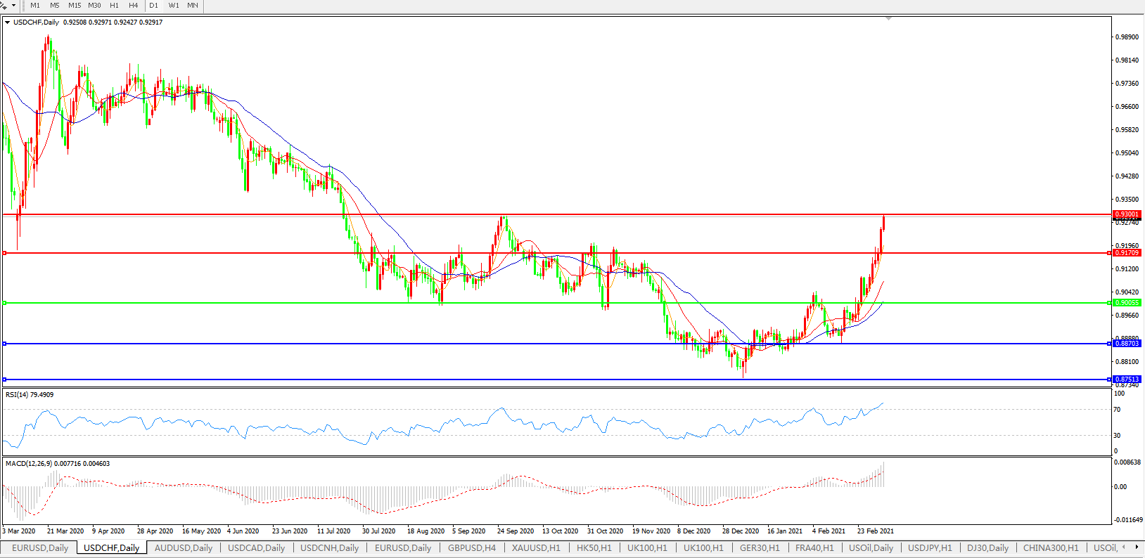 美元兑瑞郎USDCHF 日线图: