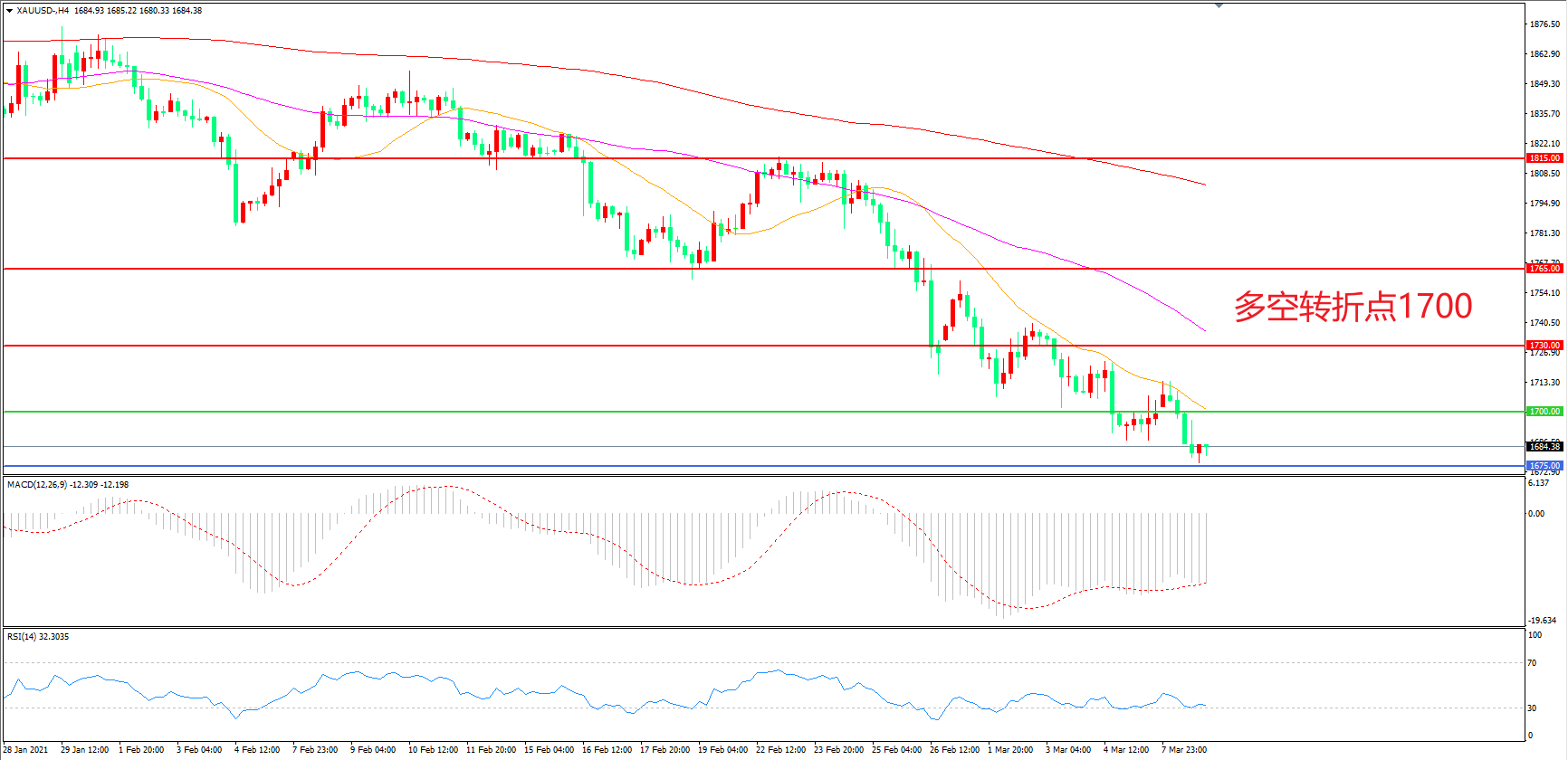 交易策略:在1700.00之下看跌,目标1675.00 1640.00