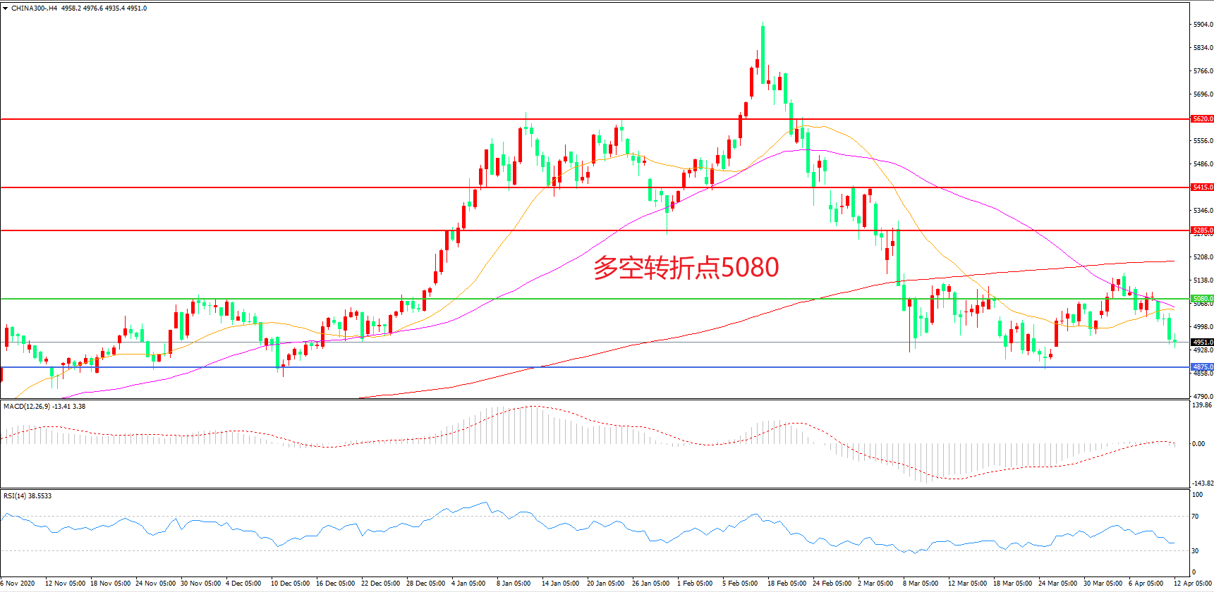 周一(4月12日),沪深两市延续上周的调整走势,早盘小幅冲高后全天呈单边下跌态势,前期“抱团股”再度成为调整重灾区,沪深300长阴下破,收报4951点。两市合计成交7757亿元,北向资金净买入43.04亿元。目前市场对白马股的业绩增长预期非常苛刻,白马股一季报不及预期很容易引发资金加速出逃,从而导致短期内股价明显下跌。