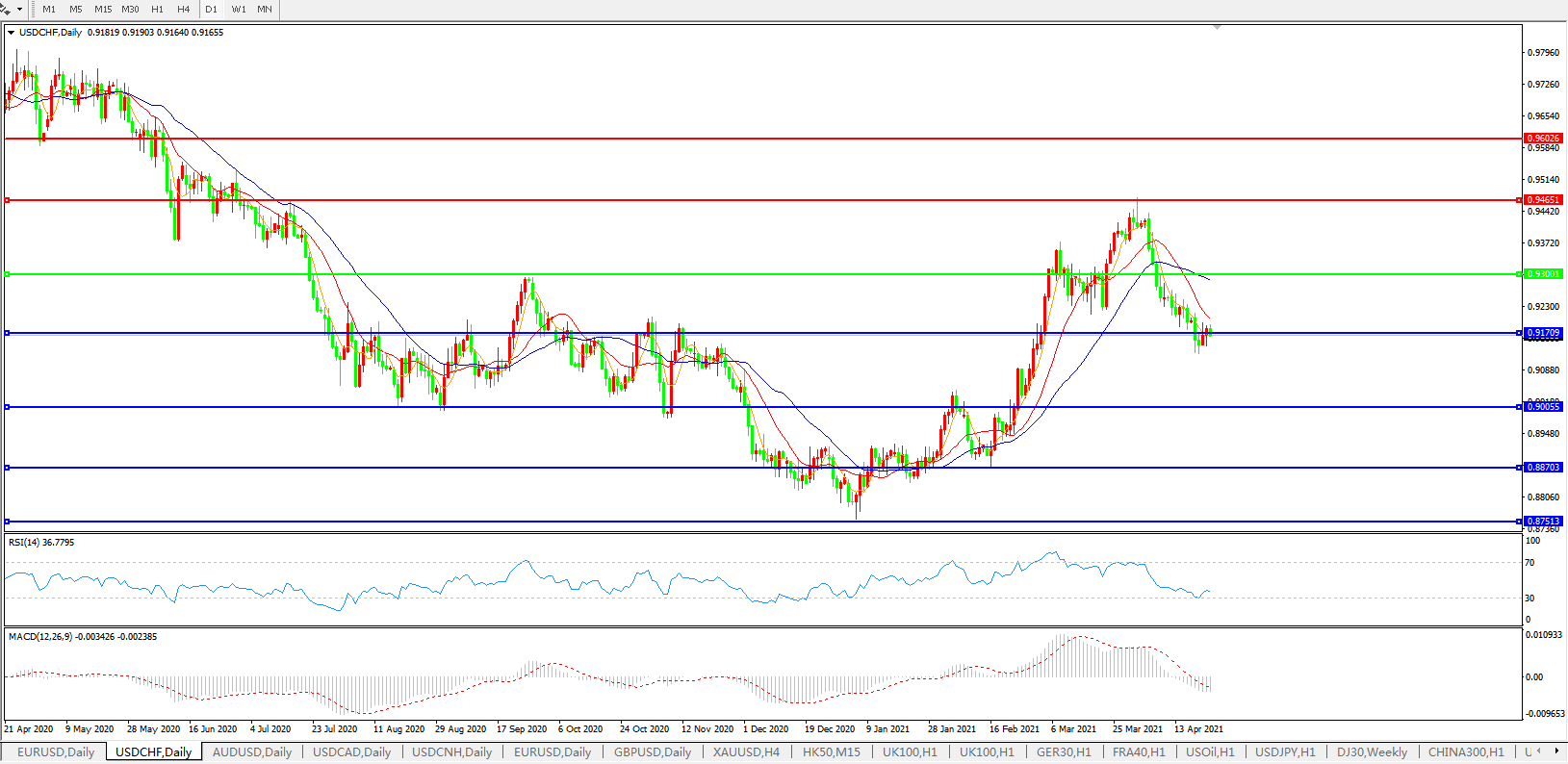 美元兑瑞郎USDCHF    日线图: