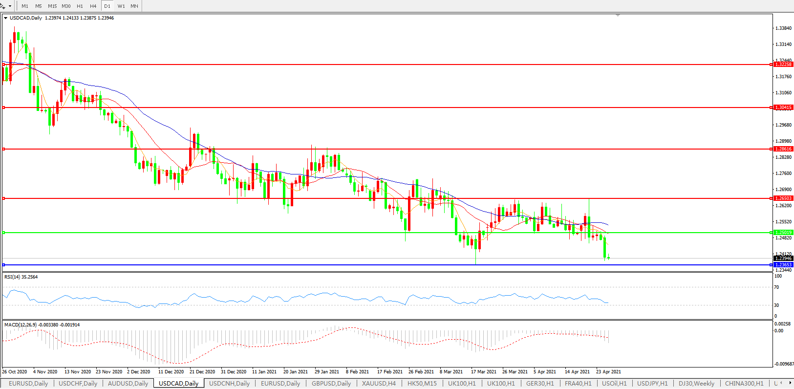 美元兑加元USDCAD    日线图: