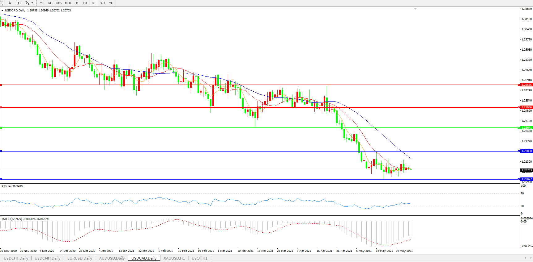 美元兑加元USDCAD 日线图: