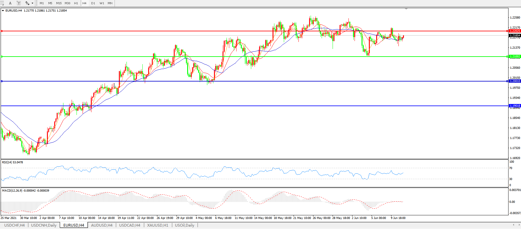 欧元兑美元EURUSD   4小时图:
